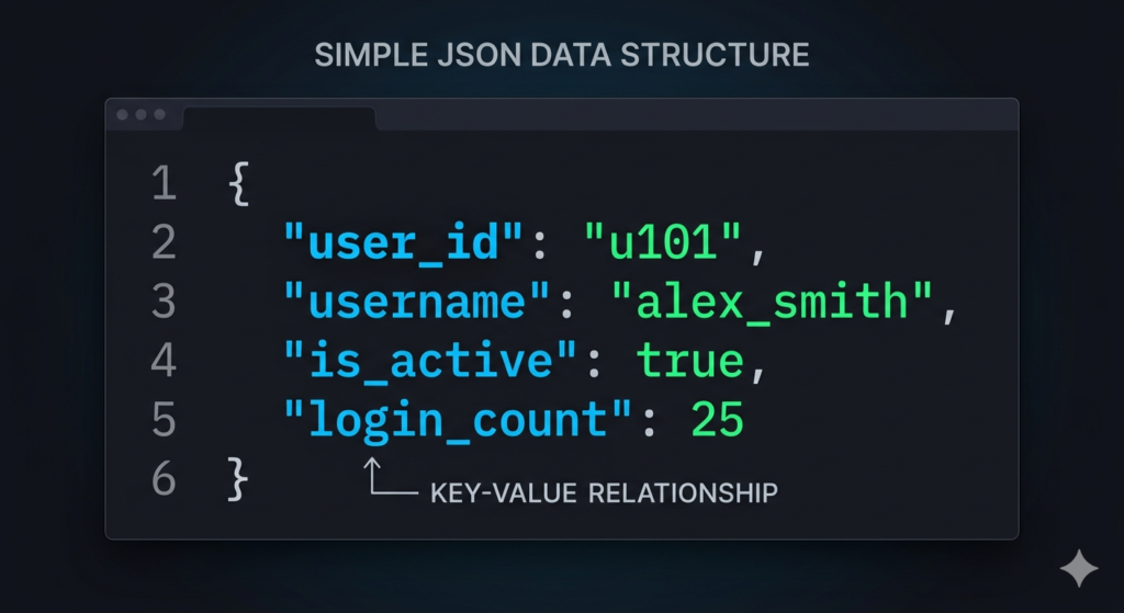 While the acronym sounds intimidating, json for non-coders is highly logical. It is simply a way to format data using “Key/Value” pairs. Imagine a digital form. The “Key” is the static label (e.g., “First Name”), and the “Value” is the specific data (e.g., “John”).