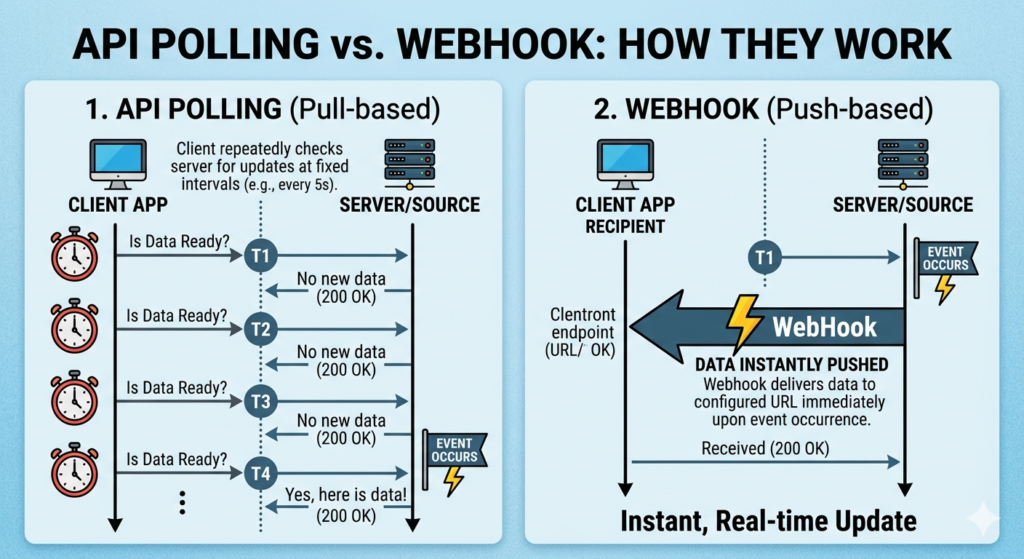 While standard APIs are fantastic for retrieving data, they usually require your system to ask for the data first—a process called “polling.” If you want an instant reaction, you need a Webhook.