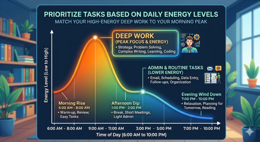 Chart demonstrating how to prioritize tasks based on daily human energy levels.